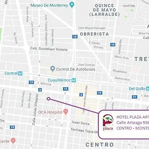 El Hotel Plaza Arteaga Monterrey se encuentra a 10 minutos en coche del Museo de Cera Monterrey, y a una distancia de 4 km del Estadio Universitario de la UANL. WiFi está a tu disposición en toda la propiedad.